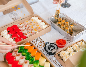 Рис ,Нори ,Огурец ,креветка ,Сыр украшение , Соус кисло-сладкий ( 8 шт)
