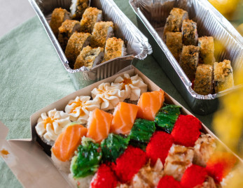 -Рис,Нори,Сыр,огурец ,Панировка половина ролла лосось свежий 0,5 ,Панировка половина ролла чука салат 0,5 ( 8шт)