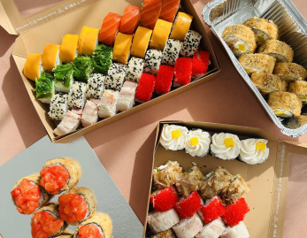 Рис ,НОРи ,Сыр ,Огурец ,панировка лосось 0,5 ,Панировка чука салат 0,5 ( 8 шт)