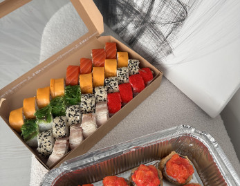 Рис ,НОРи ,Сыр ,Огурец ,панировка лосось 0,5 ,Панировка чука салат 0,5 ( 8 шт)